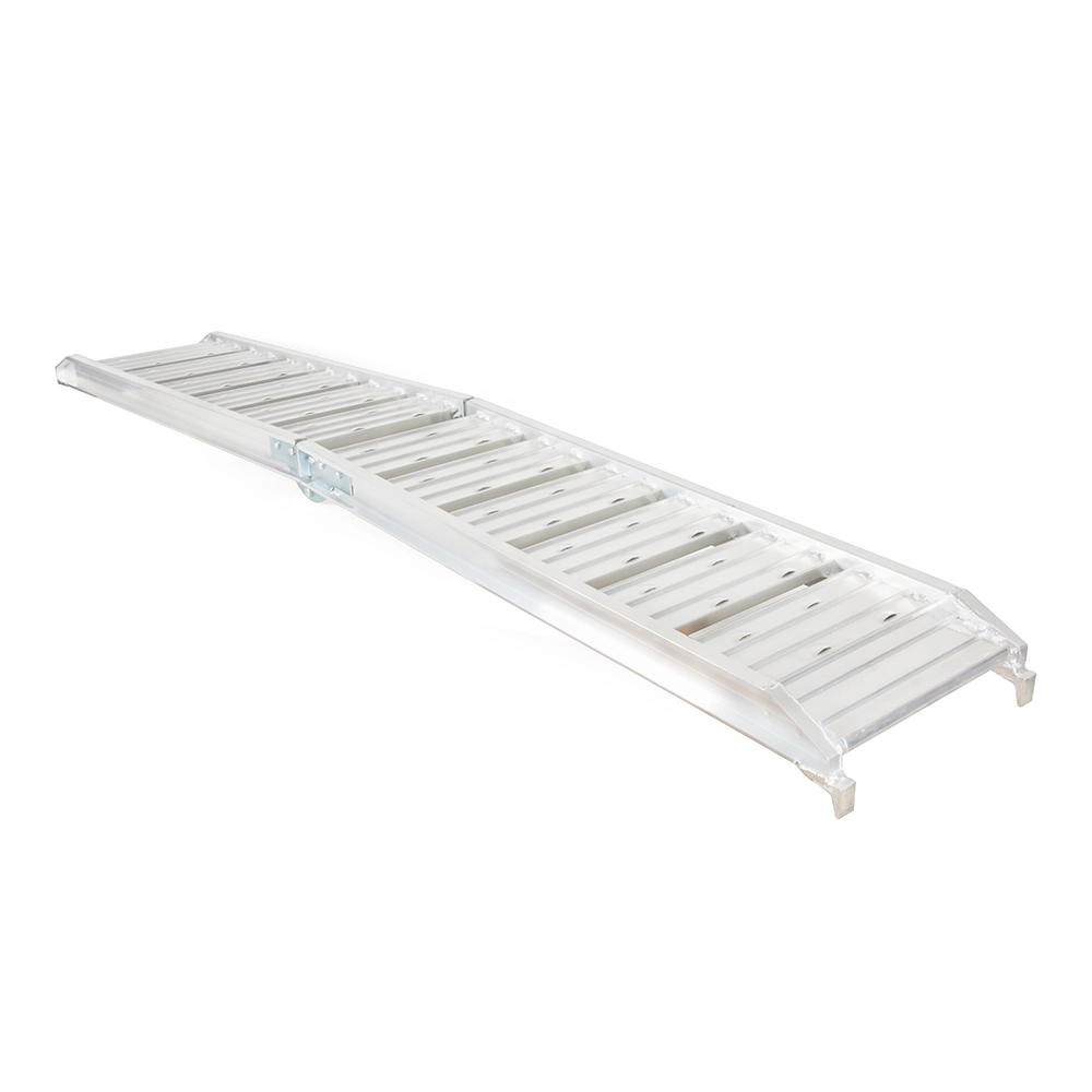 The aluminum ramp is made of high-strength aluminum and can be used as an ideal solution for ATV, 4-wheel, motorcycle, mountain bike transportation, and also as an excellent lawn mower loading ramp for yard work purposes.